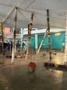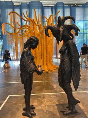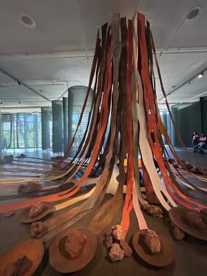 – Num terceiro momento, a Bienal, por meio da arte, reflete sobre a sociedade, abordando temas como a escravidão e o colonialismo, e como esse passado moldou o presente. É um olhar sobre como a sociedade convive com as diferenças e semelhanças, buscando uma coexistência amigável como meio de sobrevivência.