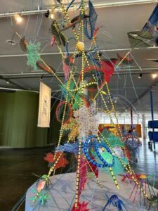 Capítulo 5 – Cadências de transformação – “Este capítulo reúne obras que abordam transformações tecnológicas, materiais e imateriais, sociopolíticas e ecológicas, culturais e psicológicas, químicas e quânticas, explorando como os humanos provocam essas mudanças e são, consciente ou inconscientemente, afetados por elas”. (escrito no painel).