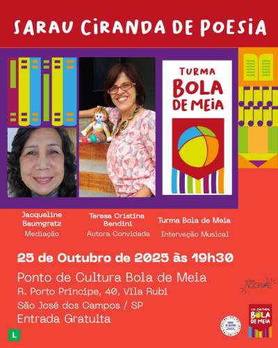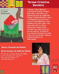 Teresa Cristina Bendini lança o seu novo livro “A Casa Melancia” no Sarau Ciranda da Poesia em São José dos Campos no dia 25 de outubro de 2025 às 19h30.