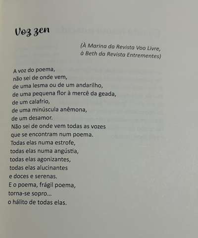Poema de Tereza Bendini “Voz Zen” lido por Elizabeth de Souza:
