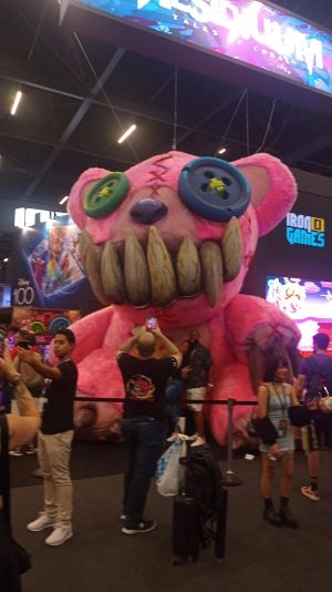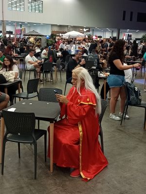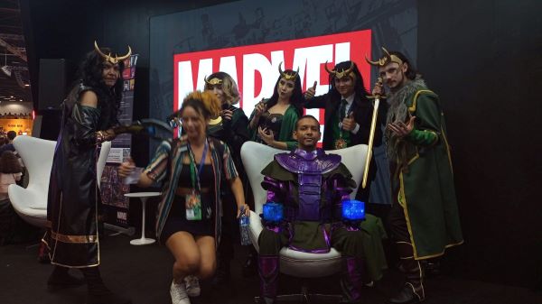 Dando um tempo na programação para falar dos cosplays… afinal não existe CCXP sem a galera fantasiada com seus personagens favoritos! Eles sem dúvida são uma atração à parte. Desta vez o maior homenageado foi sem dúvida o Homem-Aranha e suas inúmeras versões de todo o Aranhaverso, provavelmente inspiradas pela recente e excepcional animação lançada há poucos meses. Mas tínhamos também cosplays de Star Wars, os mais diversos animes, tokusatsus, personagens de games, filmes, séries… alguns herculeamente enfrentando o calor avernal que vem fazendo em São Paulo e no país todo. Uma oração de agradecimento ao deus do ar-condicionado da SP Expo, aliás. Vale o elogio para a enorme área de alimentação, com suas inúmeras mesinhas, pois geek também precisa se alimentar e descansar as pernas, de vez em quando!
