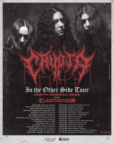 Claustrofobia foi convidado para abrir os shows da turnê norte-americana da CRYPTA. Serão 22 shows cruzando o país, passando por casas icônicas como o Whisky A Go Go, em Los Angeles, El Corazon em Seattle, entre outras.