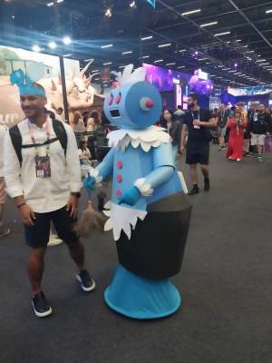 Dando um tempo na programação para falar das instalações… só tenho elogios. Pessoal da limpeza trabalhando herculeamente e deixando tudo limpo o tempo todo, uma enorme quantidade de mesinhas para o povo se alimentar, muitos banheiros, vários pontos com tomadas para o povo recarregar seus celulares e um ar condicionado mais poderoso que o soco do One Punch Man não deixava ninguém passar calor. A galera de cosplay deve ter agradecido muito esse último ponto que citei…