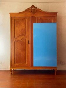 O título da exposição — (EX) CULTURA — contém em si as palavras cultura e escultura, apontando para a essência da poética de Egídio Rocci. Sua obra nasce do gesto de recolher móveis de determinadas épocas e contextos culturais, deslocando seus significados originais por meio de recortes, encaixes e justaposições com outros materiais. Assim, aquilo que pertencia a uma cultura específica deixa de ser uma coisa para tornar-se outra: uma ex-cultura em transformação.