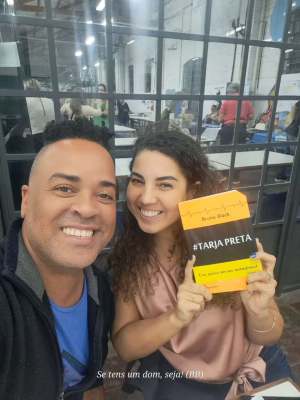 Bruno – *#Tarjapreta* – meu livro mais vendido até hoje, fala de saúde mental em forma de poesias. Em 2025 vem o 2 com prefácio da minha madrinha. Orelhas do meu paizão das artes da zona oeste WG e do amigo cineasta e ator: Luciano Vidigal!