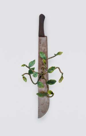 A exposição reflete sobre o corpo operário como campo de batalha da modernidade — o corpo que sustenta, carrega e é corroído pela lógica da produção. Nas obras de Marcos, esse corpo retorna à cena não como instrumento, mas como força criadora. O ferro que sangra também germina; o facão, símbolo de corte e luta, se quebra em folhas e raízes. O artista propõe uma pedagogia silenciosa, onde o gesto de soldar e torcer o metal se torna modo de reescrever o tempo e o território.