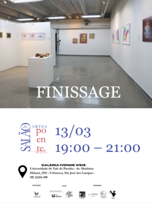 SÃO JOSÉ DOS CAMPOS – Após semanas de exposição e intensa participação do público, o II Salão de Artes Poente realiza o seu evento de encerramento (finissage) nesta sexta-feira, 13 de março, das 19h às 21h, na Galeria Ivonne Weis – UNIVAP.