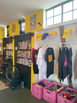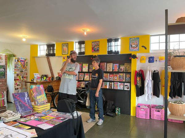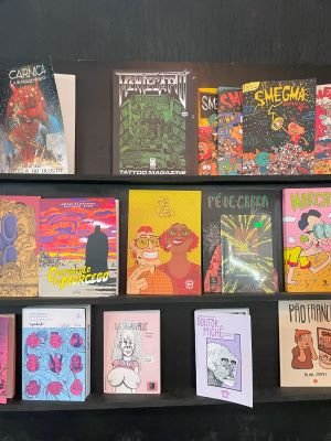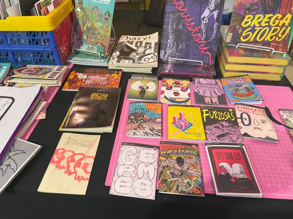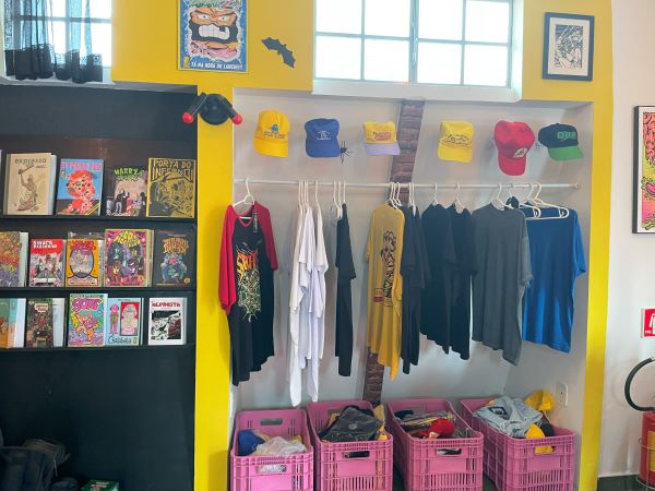 O Entrementes esteve presente no local e bateu um papo com o proprietário, Lobo Ramirez, e vocês podem acompanhar essa conversa enriquecedora nos vídeos. O trabalho da casa para fomentar a arte de quadrinistas nacionais de fora do mainstream é absolutamente louvável, uma luta hercúlea digna de se aplaudir em pé. Podemos encontrar obras não apenas de artistas da região, como da grande cartunista Magô Pool, mas também de todas as regiões do país.