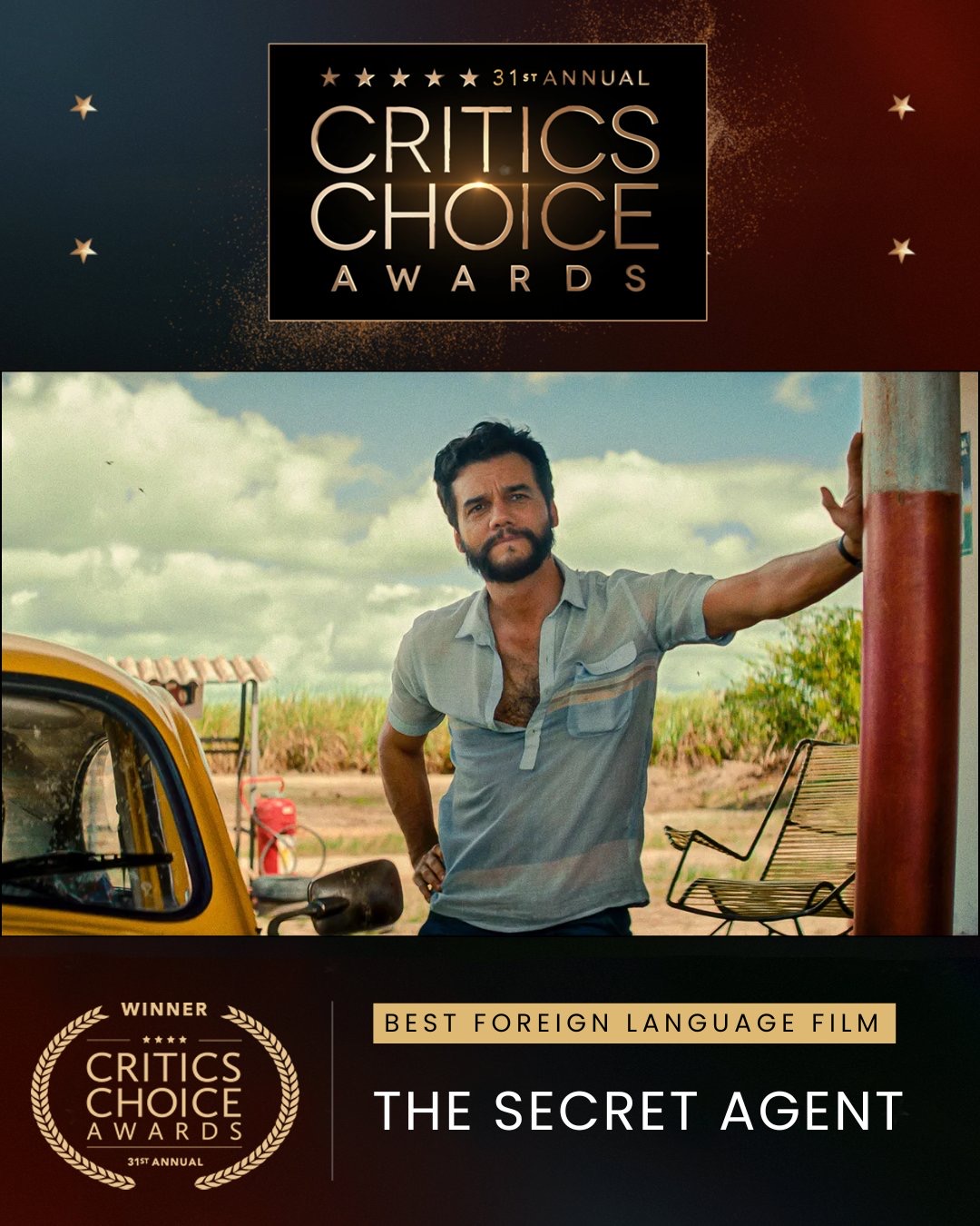 O Agente Secreto vence o prêmio de Melhor Filme Internacional no Critics Choice Awards!