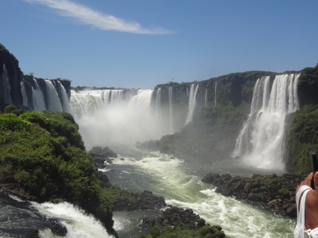 Só vimos as Cataratas do lado brasileiro e podia-se avistar a bandeira argentina tremulando ao longe, onde a visão das cachoeira é ainda mais bela, dizem. Um dia também vamos até lá, ver as cataratas no lado dos nossos hermanos.