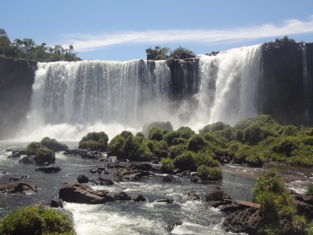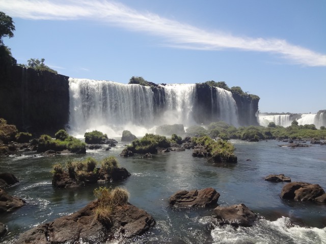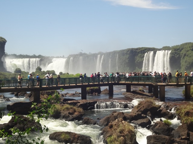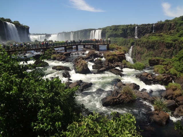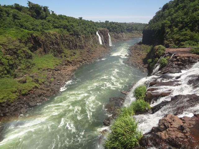Saímos de ônibus da cidade de Foz do Iguaçu, até o maior conjunto de quedas d’água do mundo. Chegando até o centro de visitantes, paga-se um ingresso para adentrar as cataratas. Percorremos a pé, uma área verde numa das últimas reserva da Mata Atlântica, uma trilha de mais ou menos hum mil e quinhentos metros. Encontramos pelo caminho, lagartos, quatis e outros pequenos animais, num desejo insano de ver uma onça pintada. Percorrendo a trilha pode-se avistar as primeiras cataratas, com pouca água, até chegar no centro nervoso em plena Garganta do Diabo, onde o deslumbramento toma conta da gente. Ouvindo “Satã” de Cruz e Souza de Broquéis e vendo o arco-íris no chão. Nunca tinha visto um arco-íris no chão, digo, na água, foi a primeira vez e uma sensação incrível, inesquecível.