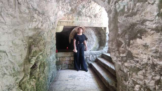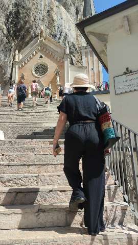 Para chegar ao santuário, minha filha, meu genro e eu, fomos por um caminho onde tivemos que descer muitos degraus, mas há outra chegada onde se sobe muitos degraus para chegar.