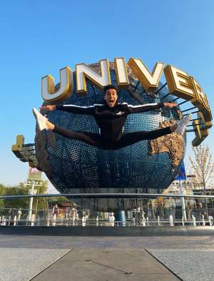 Após um processo seletivo rigoroso, que envolveu testes técnicos, avaliações acrobáticas e entrevistas, ele foi aprovado para integrar o time de artistas da Universal Studios Beijing (China), tornando-se o primeiro brasileiro contratado pela empresa. No parque, participou de produções como o Spring Carnival 2024, festival multicultural que celebra música e dança; o espetáculo natalino do Winter Holiday 2024, apresentado no Hollywood Amphitheatre; e o Universal’s Half Time Show, no qual possui um solo que conquistou o IAAPA Brass Ring Award na categoria “Most Creative Atmosphere Production”, um dos prêmios mais relevantes do setor de parques temáticos. Entre os reconhecimentos internos, recebeu o prêmio Best Partner, concedido aos artistas que mais se destacam pela excelência técnica, colaboração e profissionalismo.