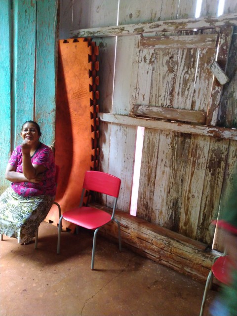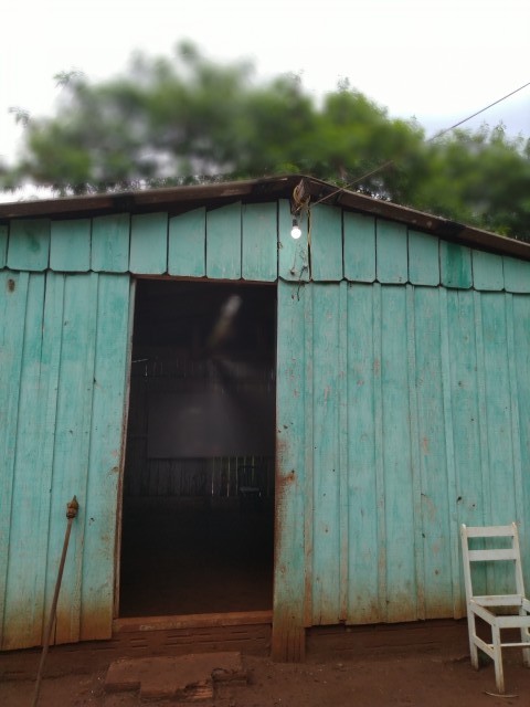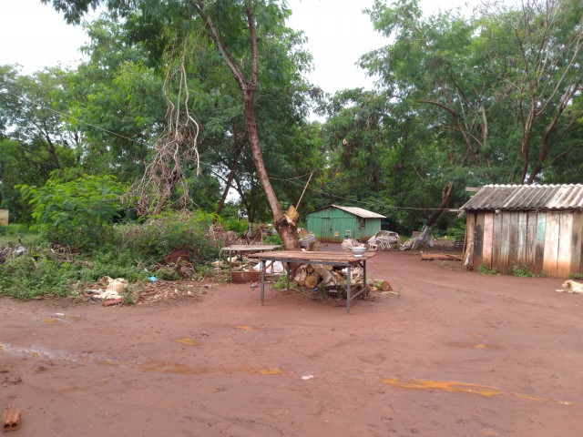 Na cidade de Guaíra, PR tem algumas aldeias indígenas que ficam nos arredores e escolhemos uma para visitar, a “Aldeia bonita” que fica mais perto de onde estávamos. Uma sugestão da Cláudia, a responsável pelo Museu Sete Quedas, que nos recebeu muito bem. Ela avisou a esposa do Cacique pelo celular, de que iríamos até lá. Um grande quarteirão verde, com suas casas de madeira, a fumaça saindo por chaminés, os animais de estimação andando por todo lado e como havia chovido, um barro vermelho escorregadio que cobriu meus pés, os mesmos pés da infância quando atolava no barro vermelho do Norte do Paraná .