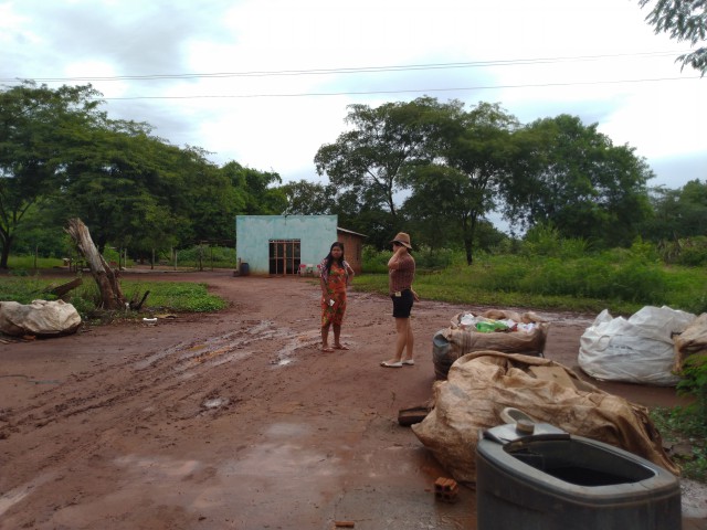 E Kunha Poti nos recebeu, filha do Cacique Cipriano e de Selma e nos conduziu até o centro da aldeia onde fica a Igreja, a Escola e a Casa de Reza e depois nos levou para caminhar por toda a Aldeia. Na escola, sua mãe nos mostrou o artesanato, que fazem como uma forma de conseguir dinheiro para sobreviver. Além do artesanato, trabalham com recicláveis. Neste local existem 60 famílias que vivem nas casas de madeiras (uma ou outra de alvenaria) que vão sendo construídas conforme a família vai aumentando.