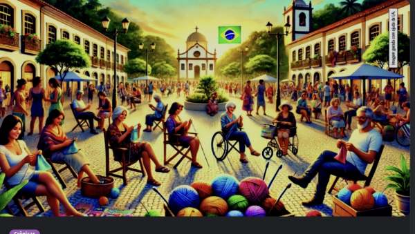 Um jovem ao sentar no banco do metrô aproveita esse momento para não ler mensagens no celular, ou buscar distração com jogos on-line, ou assistir a vídeos que gastam seu tempo, aquele mesmo de sua própria vida que não retorna. Ele decide retirar de sua sacola, duas agulhas para fazer tricô, puxa uma linha e continua a tricotar uma touca que será utilizada nos dias frios de sua cidade. Ao seu lado outros olham surpresos, atentos ao ridículo de um ato fora do comum nesses dias, mas em poucos minutos outra pessoa puxa suas agulhas da bolsa e se encoraja a fazer o mesmo, e passam a conversar sobre suas vidas sem compromisso algum, na companhia desse tricô com gente, que se aproveita do artesanato para crescer por dentro e trocar espaços de vida útil, e não só o fútil passar de diversos minutos com o olhar nas redes antissociais em seu celular.