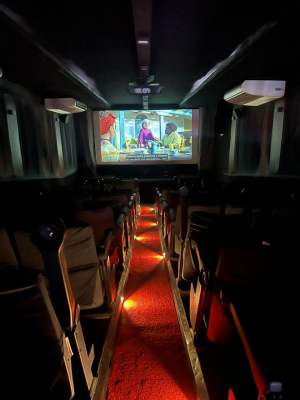 Com quase 20 metros de extensão e capacidade para 83 pessoas sentadas, a estrutura da carreta oferece projeção digital, climatização, isolamento acústico, poltronas confortáveis e bomboniere. Ao longo das sessões, o espectador ganha pipoca e refrigerante gratuitamente, melhorando ainda mais sua experiência com a telona.