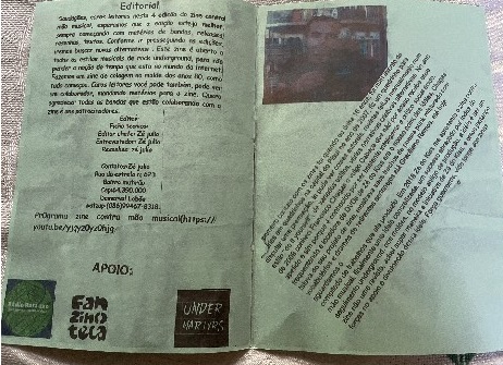 Além da Coletânea, recebemos o Zine que o Zé Júlio faz de forma alternativa aos moldes da cultura underground e vende a preço de custo para realizar o próximo. É um Zine feito a mão, artesanalmente, pelo próprio Zé Júlio. Ele aborda variados assuntos, dando ênfase a arte musical alternativa e a literatura.