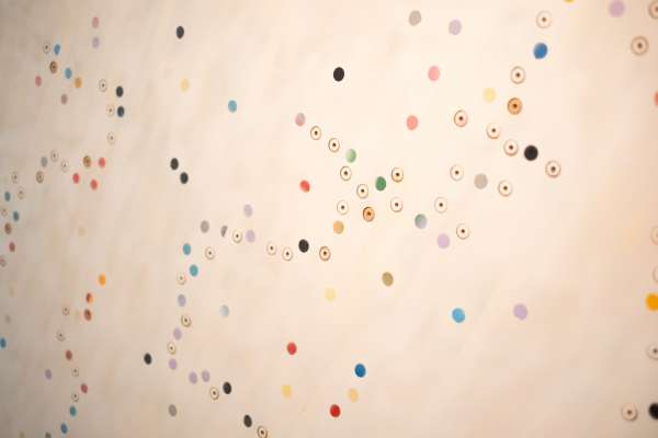 No centro de ‘Através’ está a pesquisa de David Batchelor (1955), artista e teórico cuja obra tem sido fundamental para repensar as relações entre cor, luz e cultura urbana. Em três trabalhos da série Concretos, apresentados como eixos centrais da mostra, blocos de concreto incorporam fragmentos de acrílico transparente e colorido. O contraste entre peso e leveza, opacidade e luminosidade tensiona a ideia de permanência e revela como a cor pode emergir do residual, do negligenciado e do banal. A transparência, nesse contexto, evidencia suas próprias contradições.