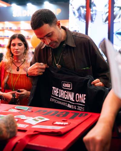 O artista também comentou o encontro entre música, cultura canábica e marcas que historicamente dialogam com esse público. “aLeda sempre foi uma marca que teve ligação com a galera da cultura e da música. Acho interessante fazer essa conexão. Estou aqui dando esse rolê e interessado em entender como a gente pode somar esforços para que essa galera toda se una num movimento a favor da legalização.”