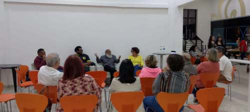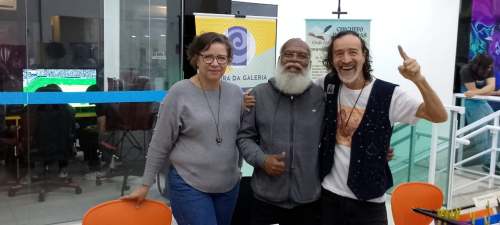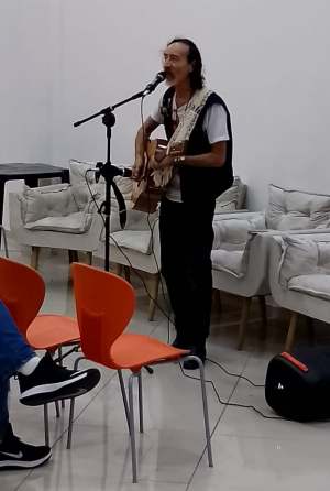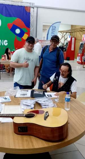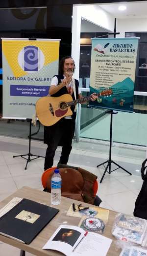 Quando cheguei no shopping, parecia um labirinto… O fio de Ariadne era uma música do disco “Coisas Lindas”. Fui focado para encarar o desafio de uma entrevista. Chegamos, conversamos, e encontrei poetas e escritores — alguns que eu não via há anos. Um evento de junção das Academias de Jacareí e São José dos Campos.