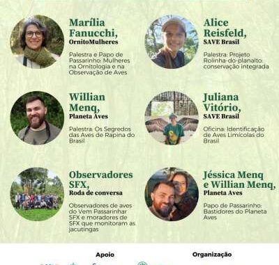 A programação de 2025 contará com especialistas como Jéssica e Willian Menq, do projeto Planeta Aves, Marília Fanucci, representante do coletivo OrnioMulheres, e Alice Reisfeld, diretora de conservação da SAVE Brasil. Segundo Alecsandra, a iniciativa vai muito além da simples observação de aves; ela busca fomentar uma reflexão profunda e coletiva sobre a importância da conservação ambiental: “Mais do que observar aves, a proposta é despertar uma consciência coletiva sobre o papel de cada um na proteção dos ambientes naturais. Ao envolver moradores, educadores e visitantes, buscamos estimular uma cultura de conservação duradoura”, destaca.