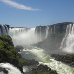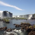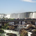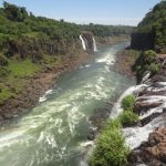 Saímos de ônibus da cidade de Foz do Iguaçu, até o maior conjunto de quedas d’água do mundo. Chegando até o centro de visitantes, paga-se um ingresso para adentrar as cataratas. Percorremos a pé, uma área verde numa das últimas reserva da Mata Atlântica, uma trilha de mais ou menos hum mil e quinhentos metros. Encontramos pelo caminho, lagartos, quatis e outros pequenos animais, num desejo insano de ver uma onça pintada. Percorrendo a trilha pode-se avistar as primeiras cataratas, com pouca água, até chegar no centro nervoso em plena Garganta do Diabo, onde o deslumbramento toma conta da gente. Ouvindo “Satã” de Cruz e Souza de Broquéis e vendo o arco-íris no chão. Nunca tinha visto um arco-íris no chão, digo, na água, foi a primeira vez e uma sensação incrível, inesquecível.