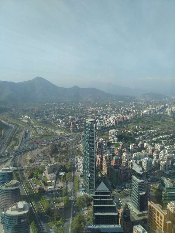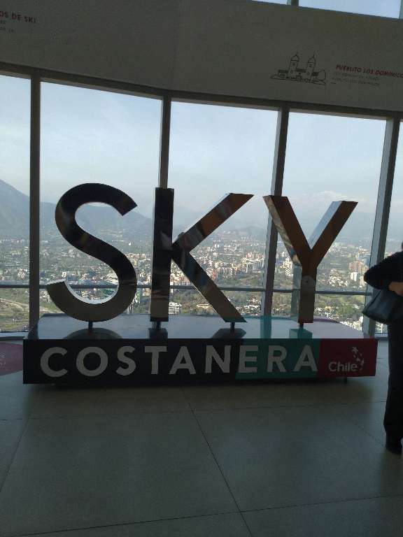Fiz uma visita guiada pelo Sky Costanera – El mirador más alto de América Latina. Essa torre possui 64 andares e o elevador chega até o topo em mais ou menos 30 segundos, dá medo até de sangrar o ouvido que fica zunindo durante a subida. Mas vale muito a pena esse passeio, recomendo. Lá de cima é possível ver toda a Cidade de Santiago em 360º. É ficar a 300 metros de altura. Vou colocar alguns vídeos e fotos . Na verdade, esse prédio é um shopping com uma variedade de lojas e eles cobram 10.000 pesos chilenos durante a semana, para essa visita à torre para ver Santiago lá de cima.