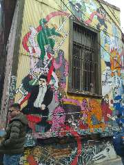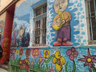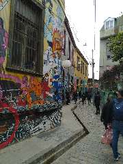 Uma cidade do litoral chileno, repleta de casas coloridas. A arte urbana caracterizada pelos grafites nas paredes, suas ruas estreitas, muitas escadarias e cerros, tudo de um charme bem peculiar. Disse-nos Victor que os artistas ali se reuniam para fazer as suas festas. Além de Pablo Neruda, conhecido poeta que ali morava, também era frequentada por Diego Rivera que vivia a pintar os muros por onde passava e sempre acompanhado de sua companheira Frida Kahlo. Mas ali também frequentavam outros poetas e músicos como Nicanor e Violeta Parra. Victor nos contou muitas outras histórias curiosas sobre a cidade.